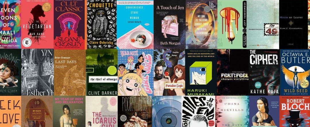 As we have established, “weird literature” is as subjective as calling things “scary” (to reference the title of this blog), but I thought I can’t write about weird fiction without throwing out some titles. I’ve read most of these titles and I also tried to limit myself to one book by each author and tried to recommend books that I don’t see a lot of on Bookstagram (though you’ll see some internet darlings too). Here are 100 books that I think totally deserve the “weird” designation, and believe me when I say that I could’ve added 100 more.